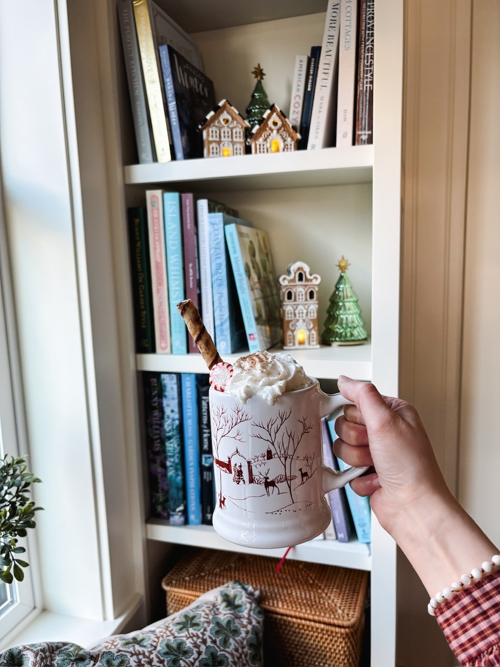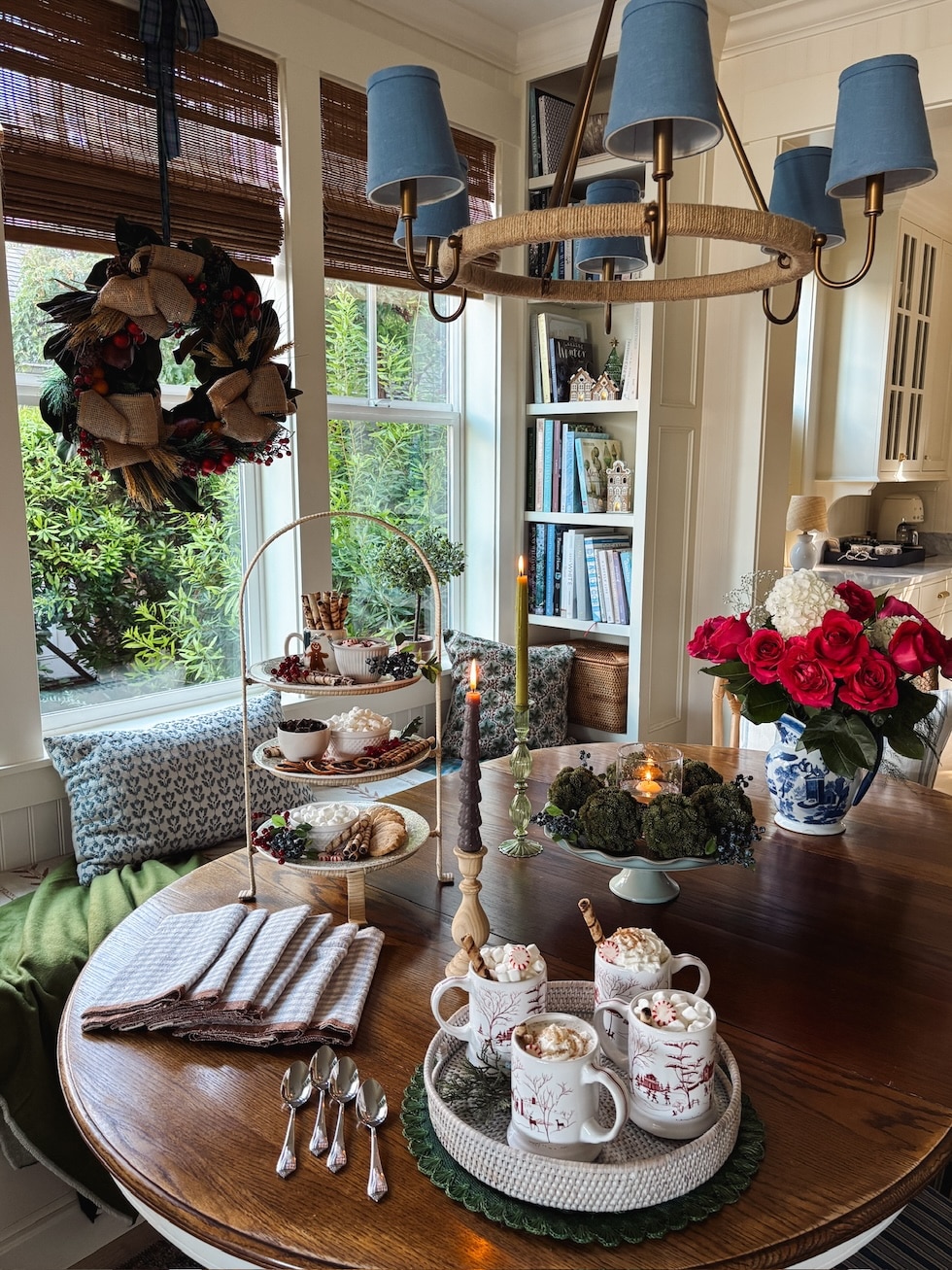 We set our mugs on a spherical tray—trays like this make even easy concepts like mugs for decent chocolate really feel extra intentional and festive (I used this this spherical rattan tray with a glass insert with this gorgeous woven placemat beneath for just a little additional aptitude).