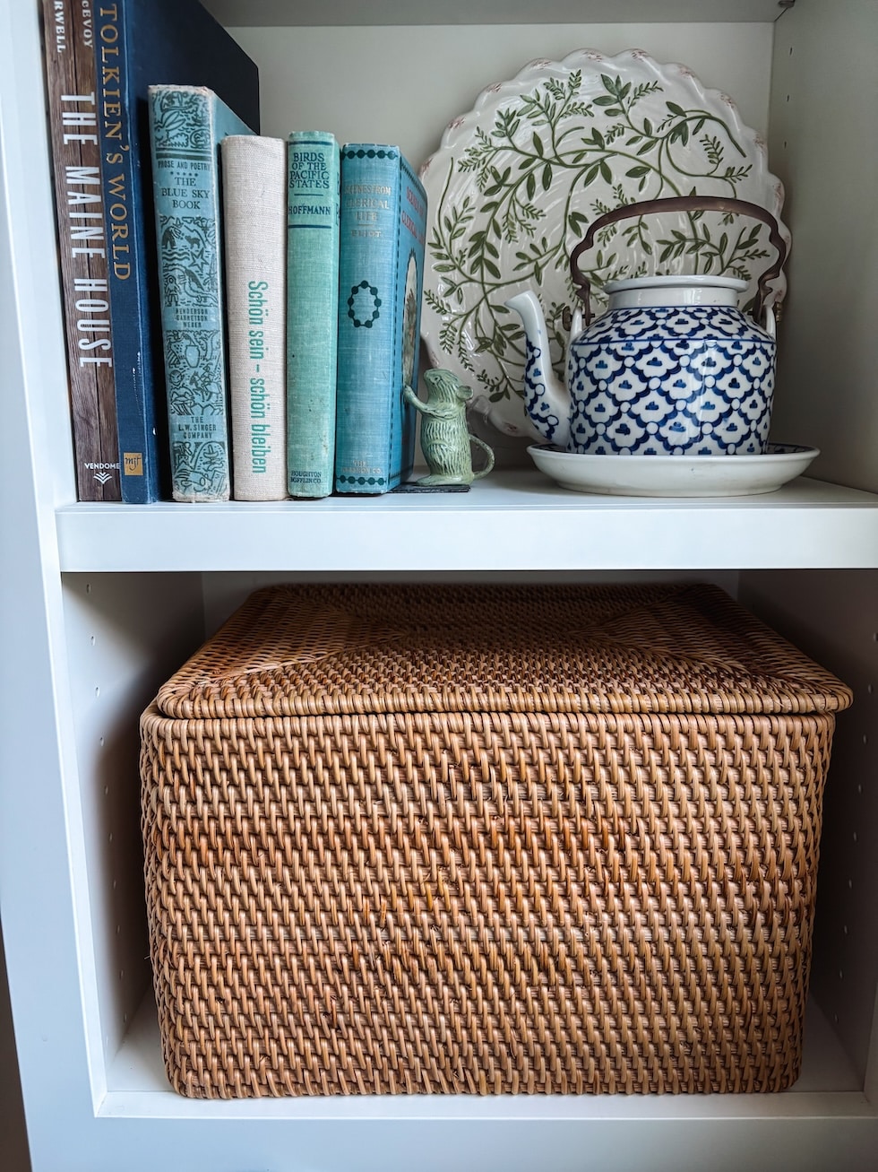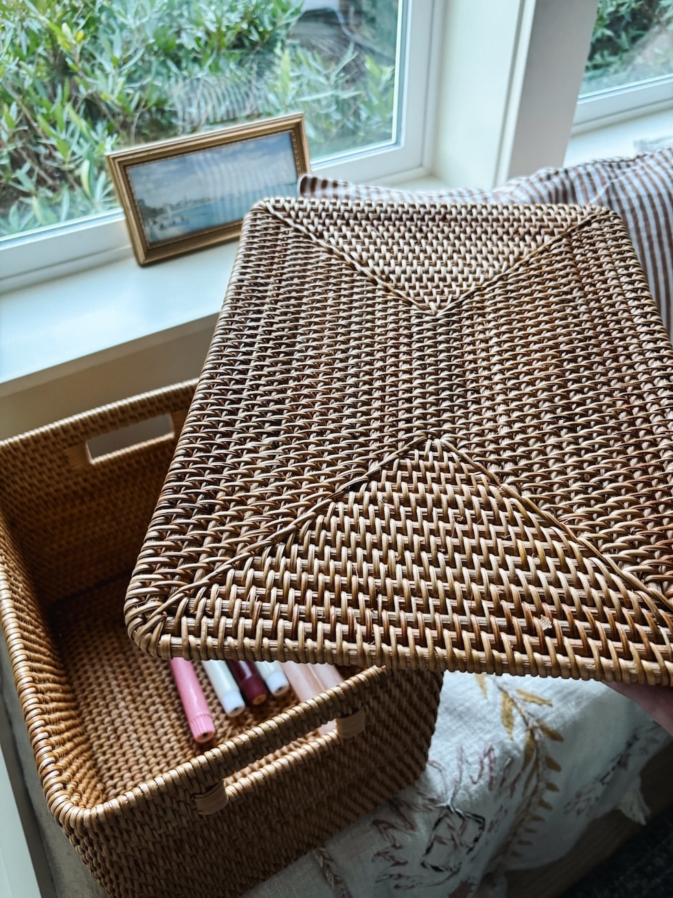 Adorning & Organizing with Baskets (A Place for All the pieces!) — Lidded Trunk Basket in my Bed room