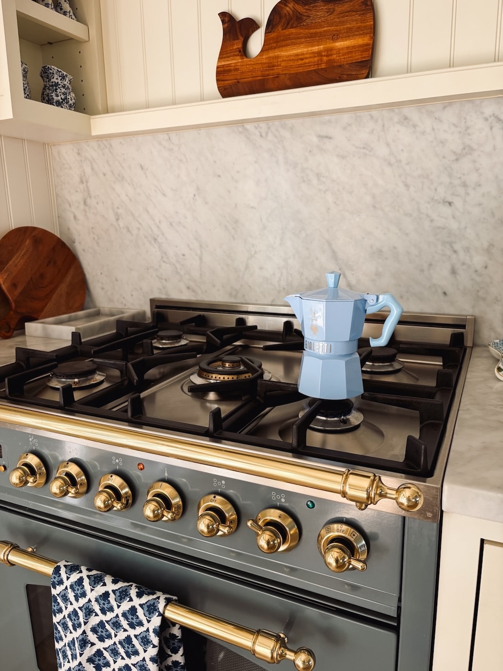After a few years of every day use, my trusty stovetop espresso pot lastly kicked the can. For now, I changed it with this smaller blue moka pot. It doesn’t brew as a lot as my outdated one, however I believe it’s completely cute—and good for a cup of espresso!