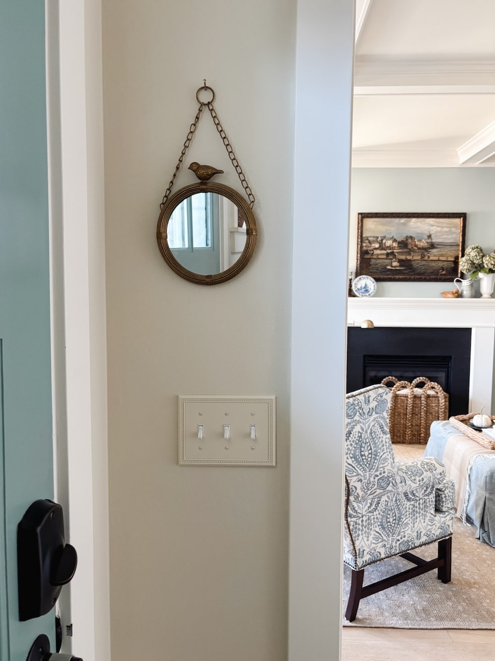 I’ve by no means appreciated our white plastic mild swap covers, so I lastly began swapping them out room by room with plates which have just a little extra character. I didn’t need brass (I’ll clarify why one other time) however I discovered some that had a little bit of “outdated residence” appeal however didn’t require portray or any effort to put in. They arrive in white too, however I selected the creamier tone for our home.