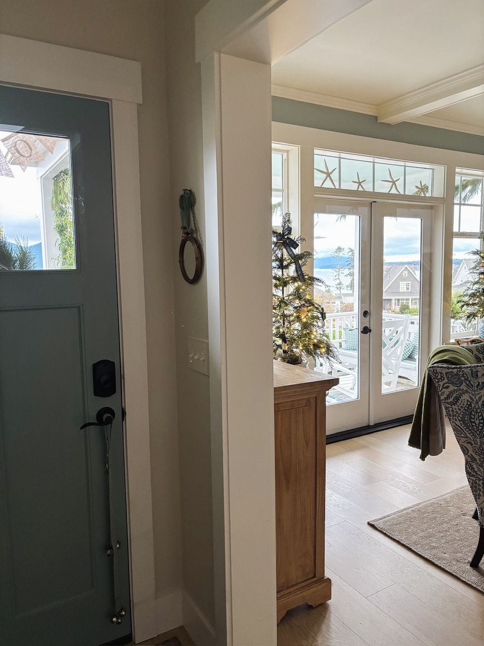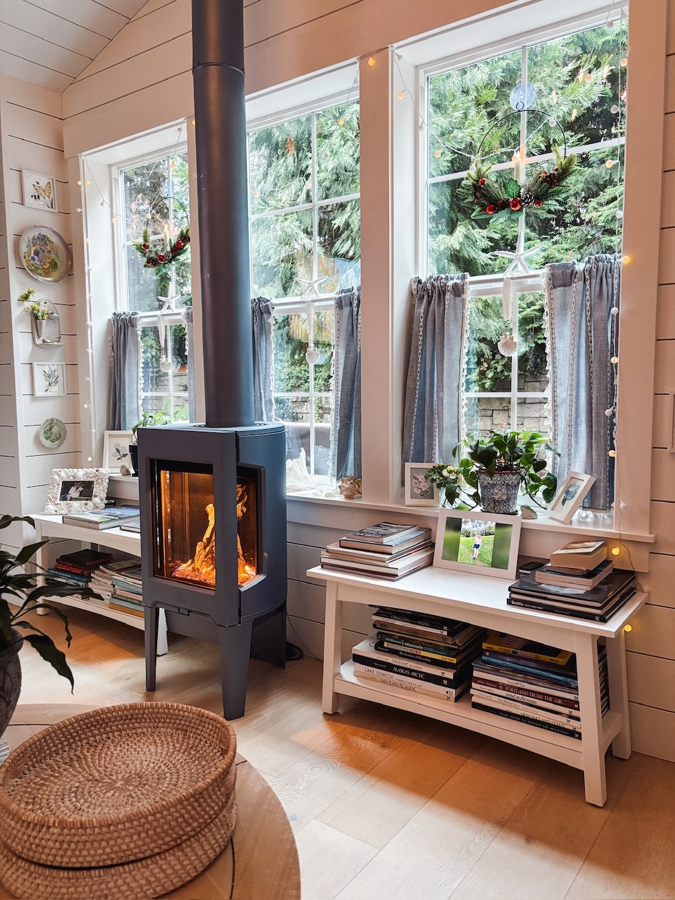 Merry Christmas, pals! Welcome to our coastal cottage Christmas tour! You’ll should image a heat greeting on the door, two pups leaping for pleasure, a giant hug with a hey, a plate of Christmas cookies and a steaming mug of espresso or tea ready for you simply across the nook. You’ll actually should think about the cookies as a result of I haven’t made any but :). Oh, nicely. I’m not Martha, however possibly I’ll get the cookies carried out by Christmas day.