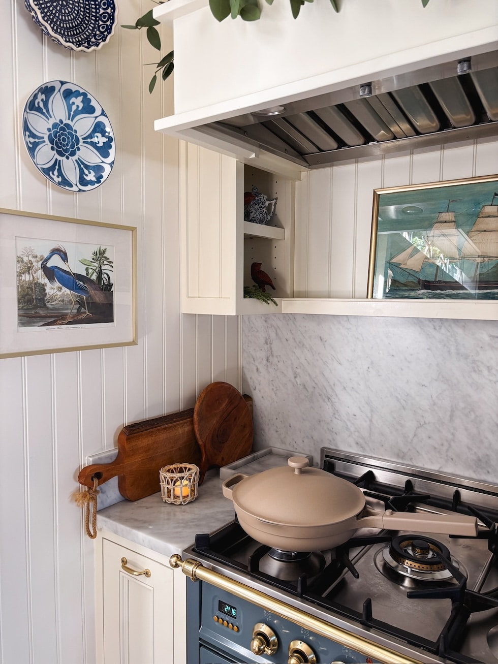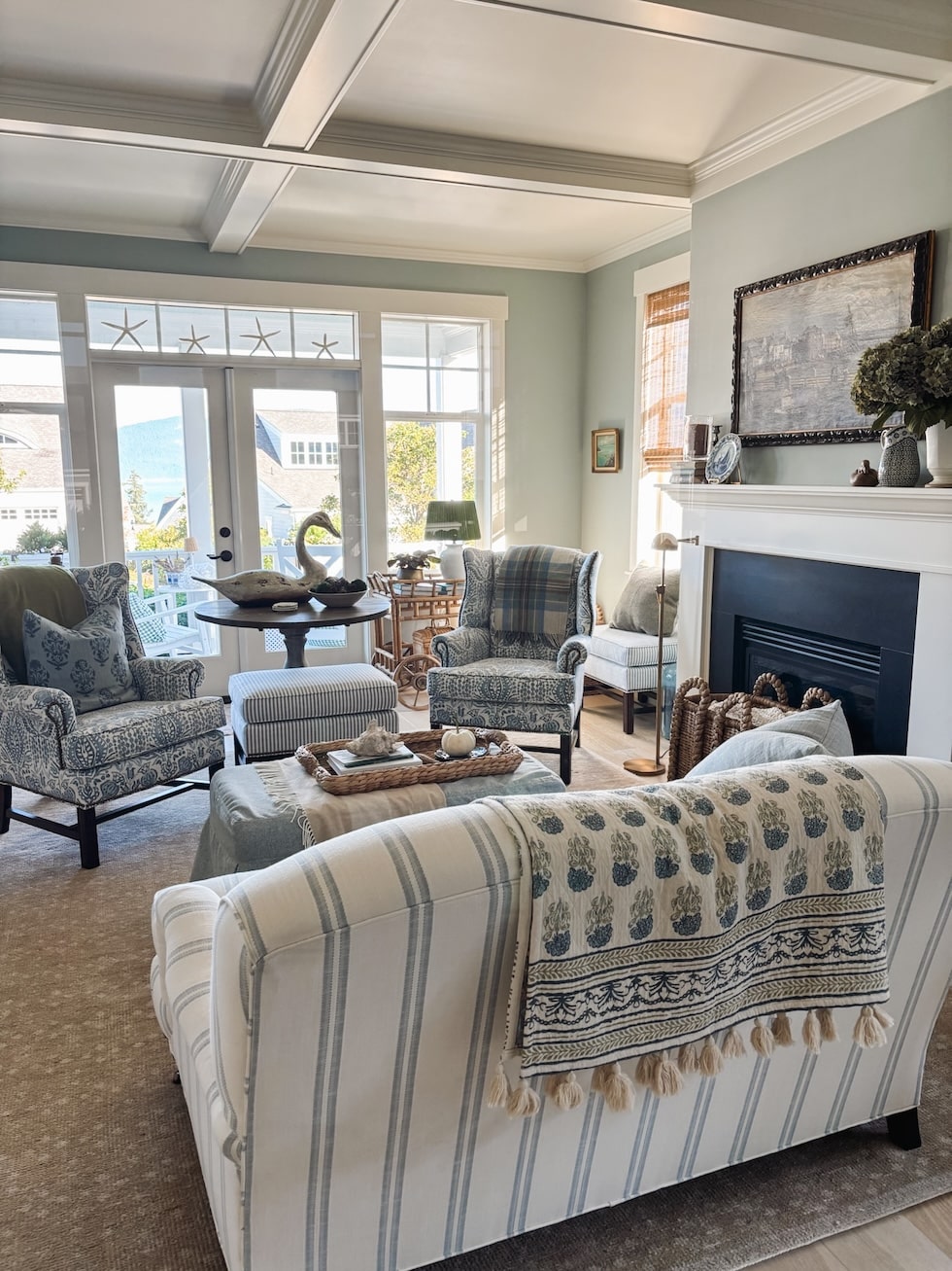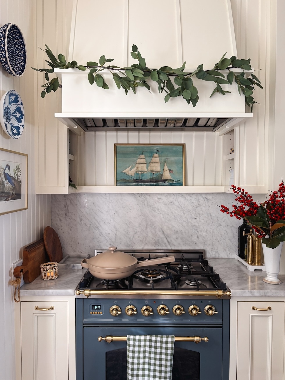 Together with my jute wrapped eating room mild, my navy entry lantern, pleated lampshades, and my blue and white dishes that I’ve used and beloved for years.