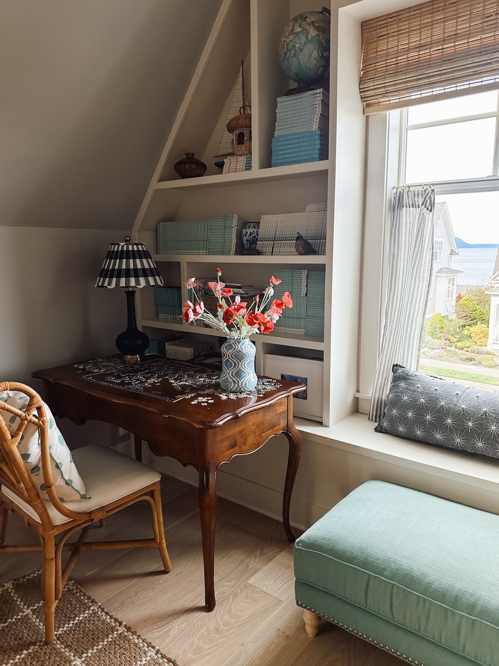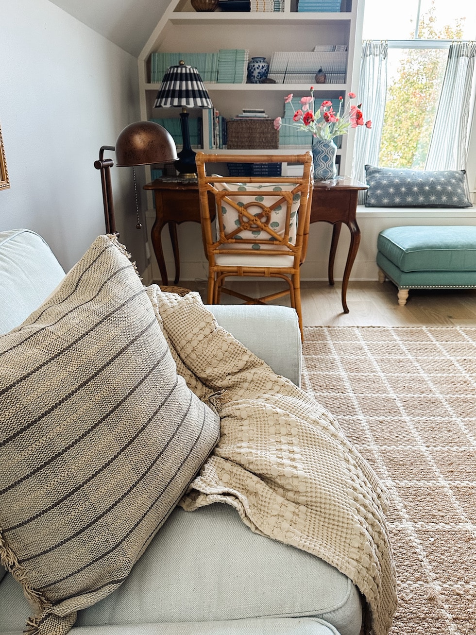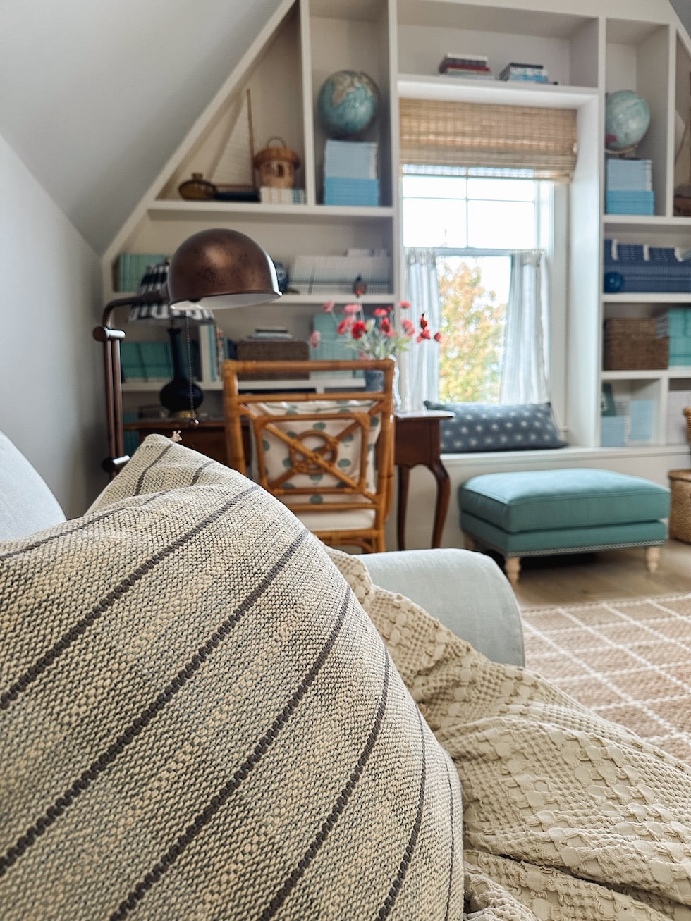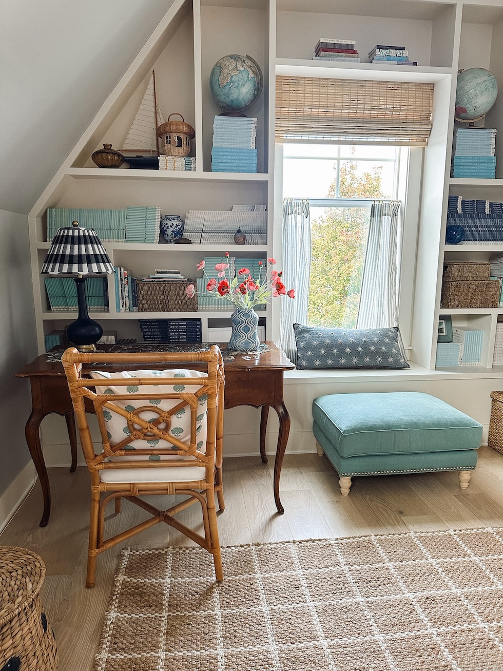 I’m all the time a fan of utilizing what we have now. The books on our bookcase on this room are the books I wrote! It’s type of enjoyable to embellish with them as a result of I take advantage of this room as my workplace too.