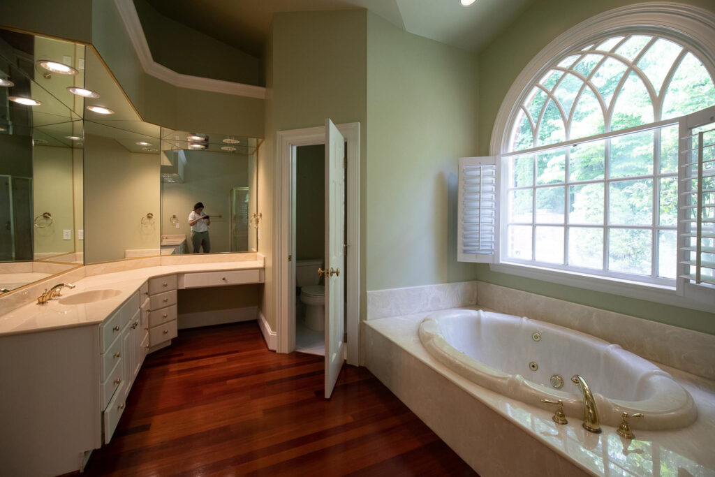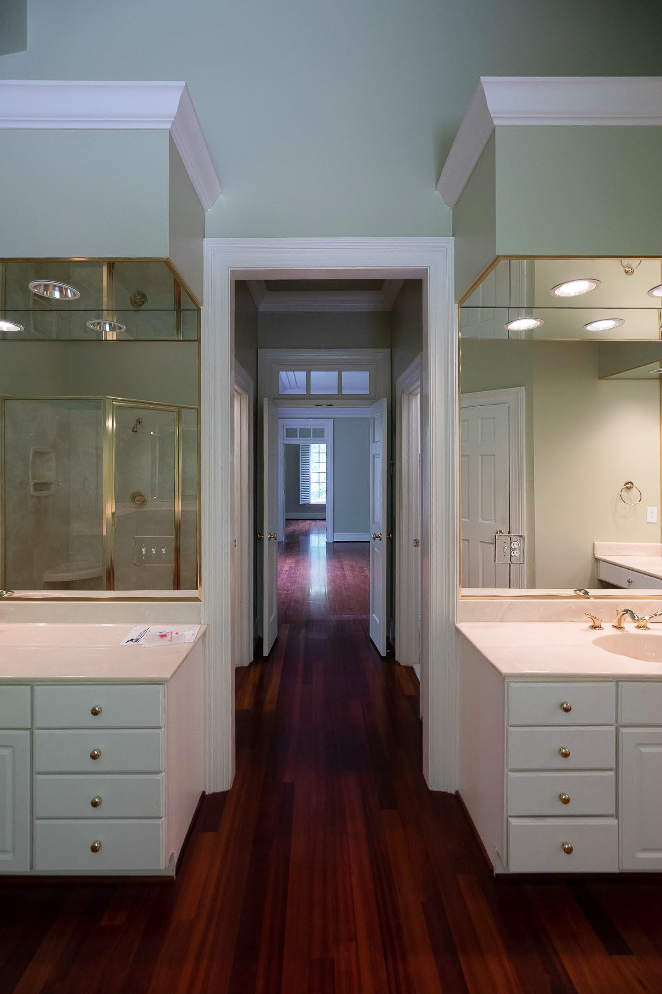 So, to kick it off, I wished to share a couple of earlier than photographs of our rest room (be aware, these had been taken earlier than we moved in, so there’s not any muddle anyplace, however imagine me once I say the drawers in our vanities are so shallow that we each have a lot ON our counters that do not slot in our drawers.), however nothing else has modified. We by no means painted. The cherry flooring are nonetheless in place. The mirrors on each angle. It is a journey.