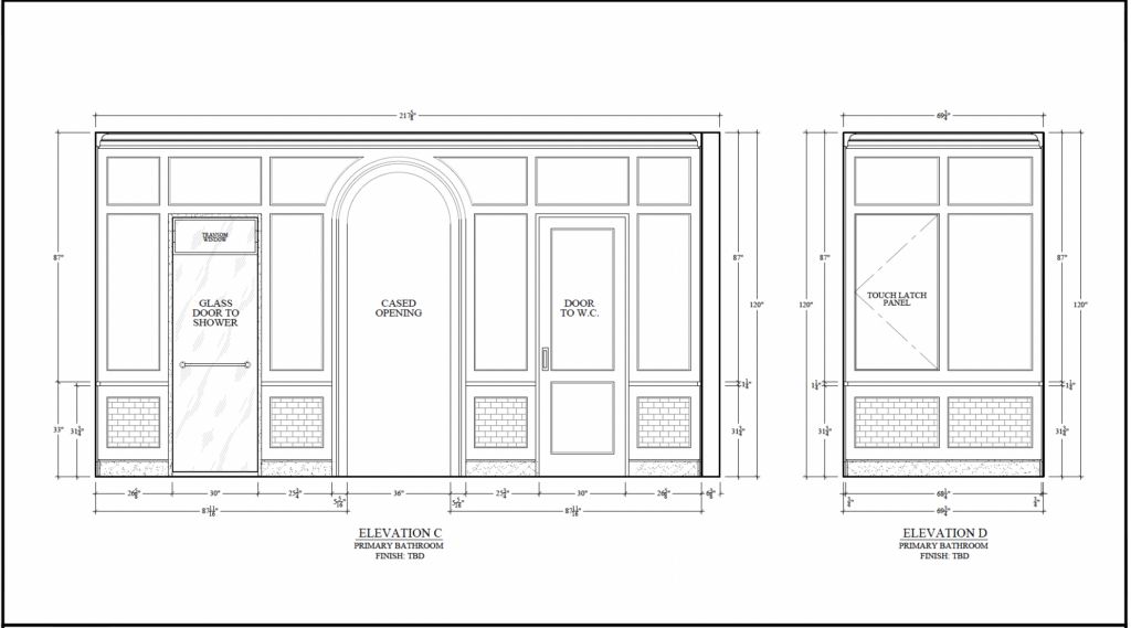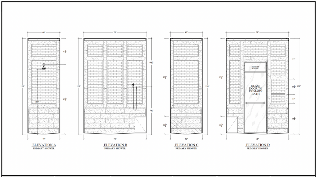 And a few fairly in-shower particulars. No kidding–the DETAIL that Stoffer cabinetry places into their concepts and elevations are unmatched. We wished to create the identical paneling impact within the bathe as the remainder of the partitions of the toilet and I am unable to wait to see this come to life. We’re going to do a sensible bathe, so the controls will really be on a panel proper exterior of the bathe.