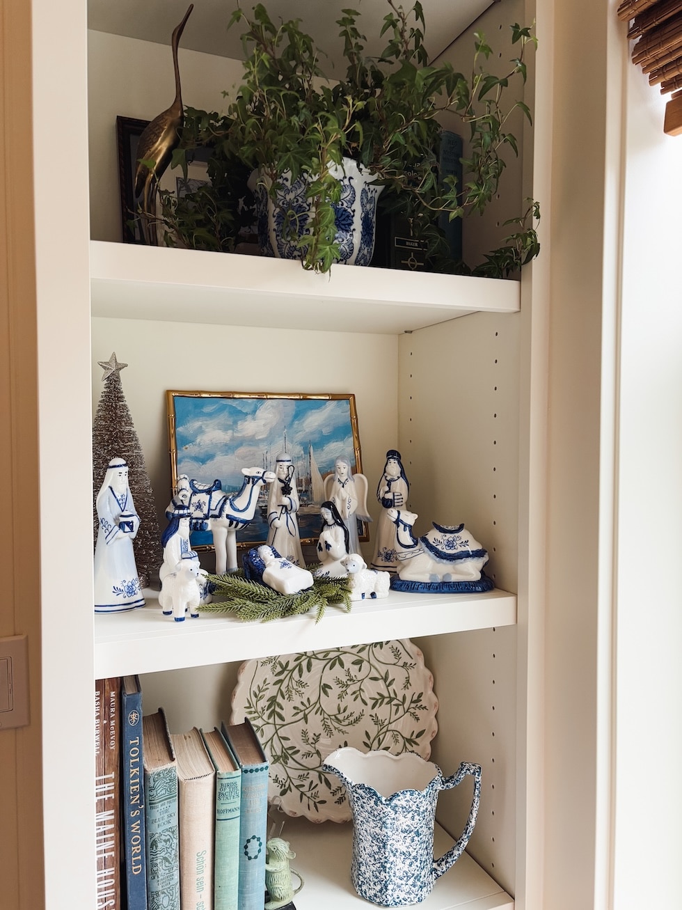 This blue and white nativity scene was love at first sight. It feels so particular in our dwelling to recollect the rationale for the season.
