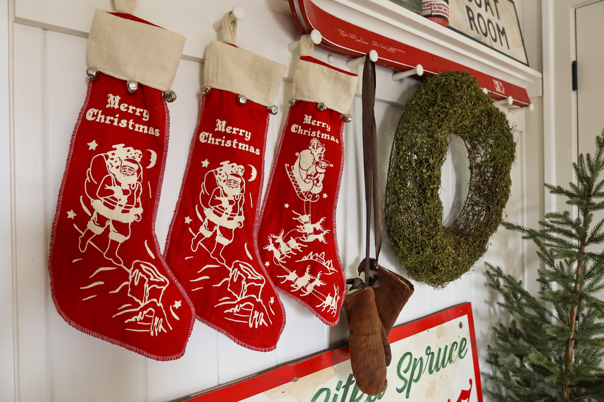 The signal’s weathered particulars and nostalgic appeal make it the proper point of interest, tying the entire vignette along with that classic Christmas heat I like. And whereas the signal steals the present, it pairs fantastically with the vintage-inspired stockings from The Discovered Cottage. Their basic particulars really feel like they’ve been handed down via generations, although they’re model new.