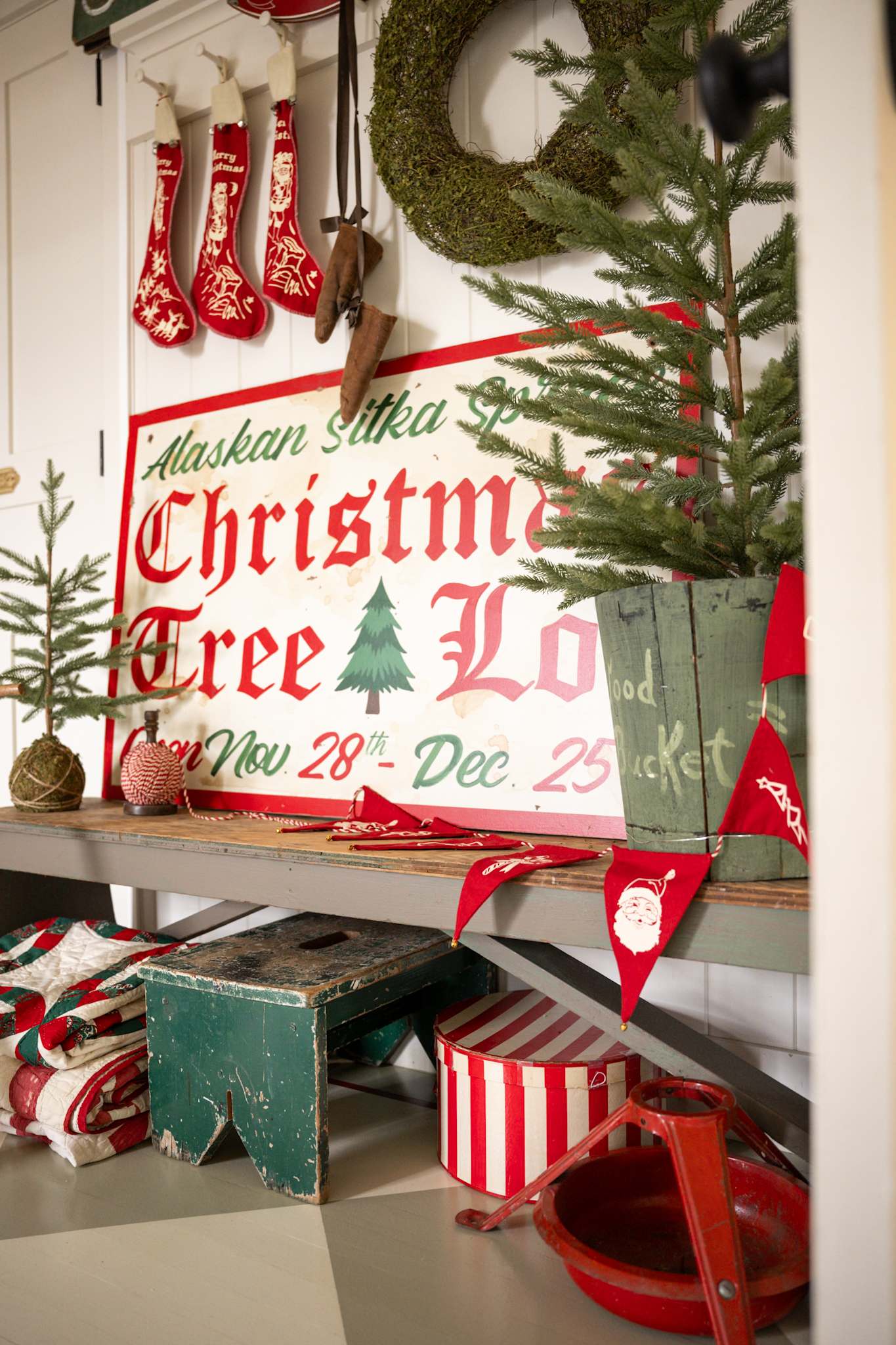 One in every of my favourite issues about adorning is the artwork of mixing outdated and new items to create an area that feels timeless, cozy, and filled with character. This Christmas, our mudroom is residence to the happiest little vignette that completely showcases this stability. Anchored by a beautiful vintage-inspired Christmas tree lot signal from Weathered White Barn, the house is layered with antiques, classic treasures, and some new finds to drag all of it collectively.