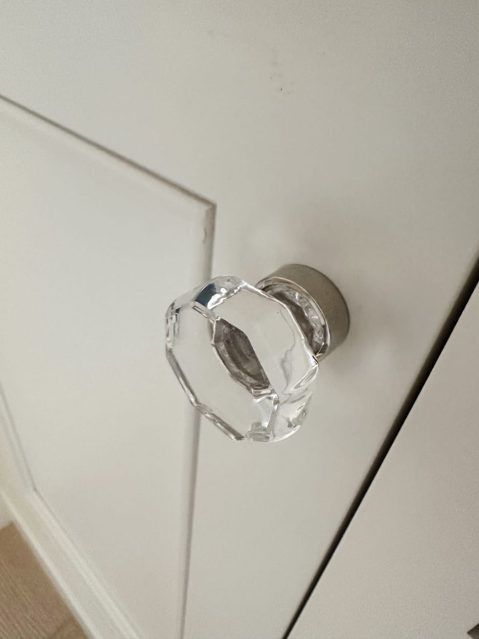 We did a basic mixture of {hardware} with largely aged brass and nickel finishes in addition to some glass knobs.