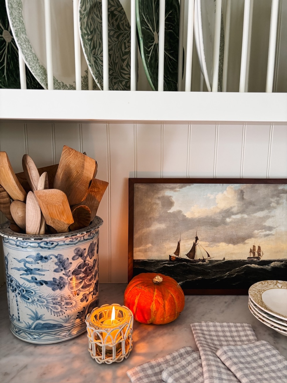 Welcome to some scenes from our cozy fall kitchen! My daughter Courtney and I not too long ago styled our kitchen for a model video we made for a partnership on Instagram, so we thought it will be enjoyable to take some pictures to share with you right here!