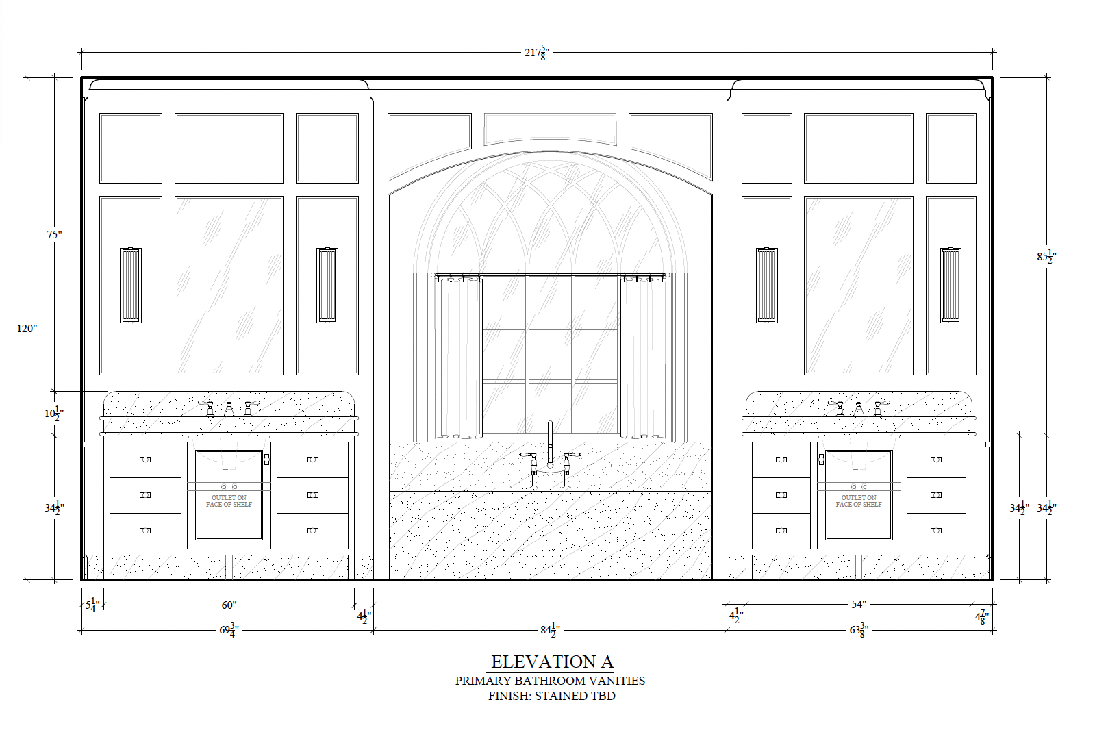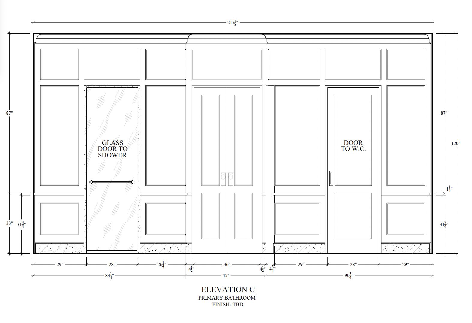 Within the bathe, we’re mimicking the wall moldings—in that there’s going to be tile creating insets, and contained in the insets there can be a smaller completely different tile. We’re even mimicking it within the bathe to replicate the molding on the skin. It’s gonna be nice.