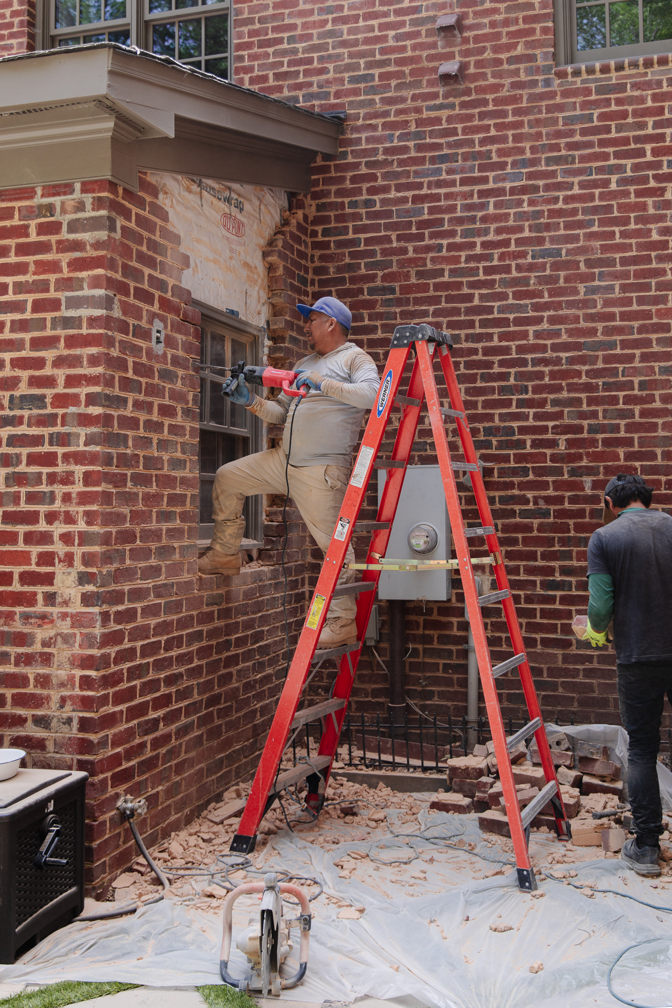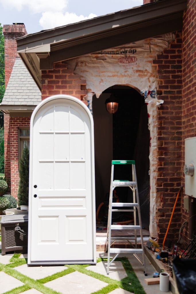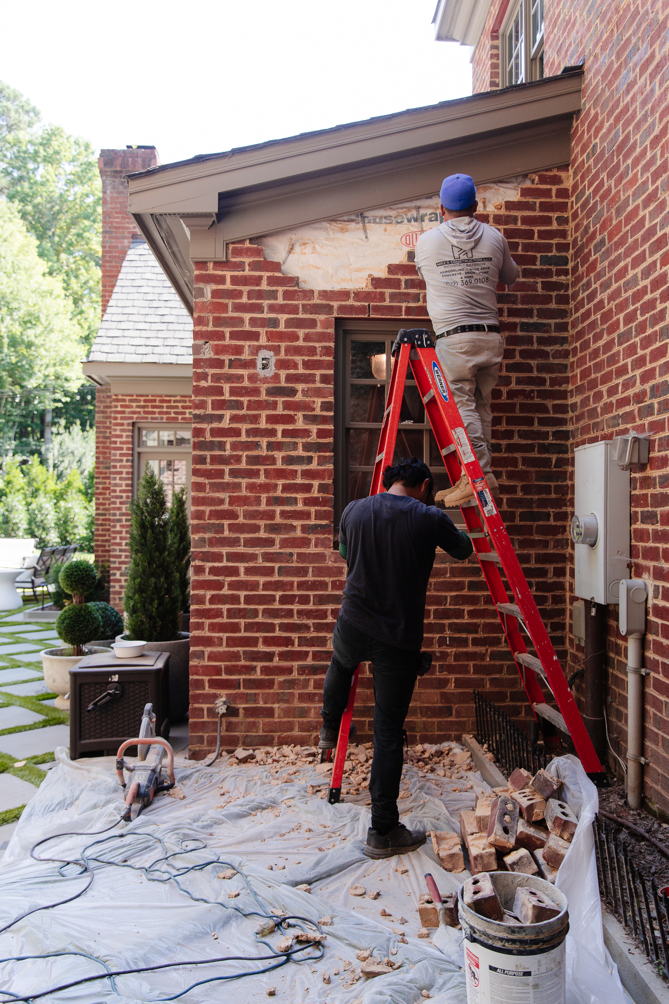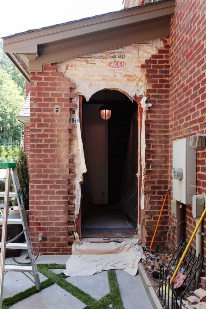 As soon as we had the door in hand, it solely took our contractors a number of days to show the window right into a doorway. They saved the bricks they eliminated across the window, reduce a gap to make the arch, put in the door, after which re-bricked round it. As a result of our brick is a number of a long time outdated and onerous to discover a match, so it was essential that they had been in a position to make use of all the identical brick. It was a painstaking course of, however they did nice work!
