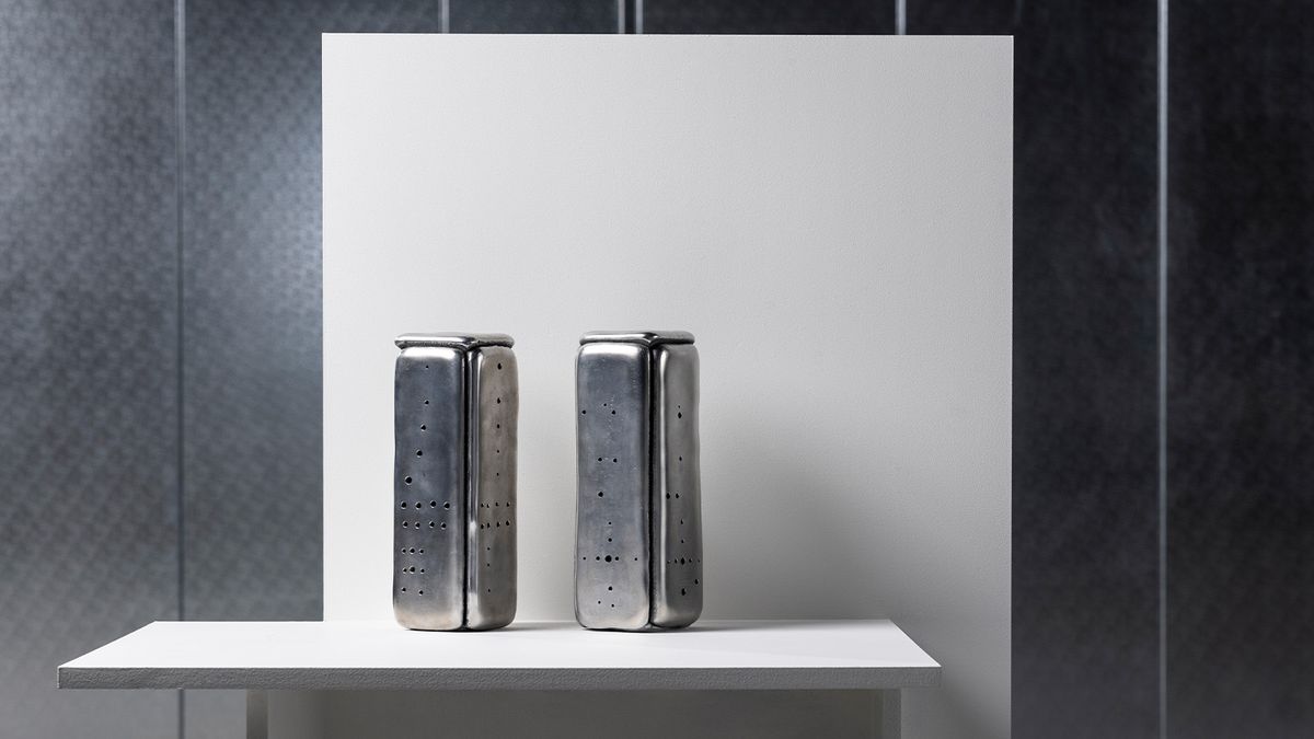 A number of of the designers selected to include varieties or supplies that reference locations Imandt and Maxwell visited on their tour, such because the Chinese language graphite pigment utilized by Steven Blench of Fife-based studio Chalk Plaster to color his minimalist bookends. Alistair Byars of Edinburgh-based GRAS architects developed a pair of solid bronze cylinders that evoke the materiality of objects utilized in Japanese tea ceremonies, whereas the natural, lacquered types of artist James Rigler’s ‘International Objects’ remodel the bookshelf right into a vibrant, other-worldly panorama.