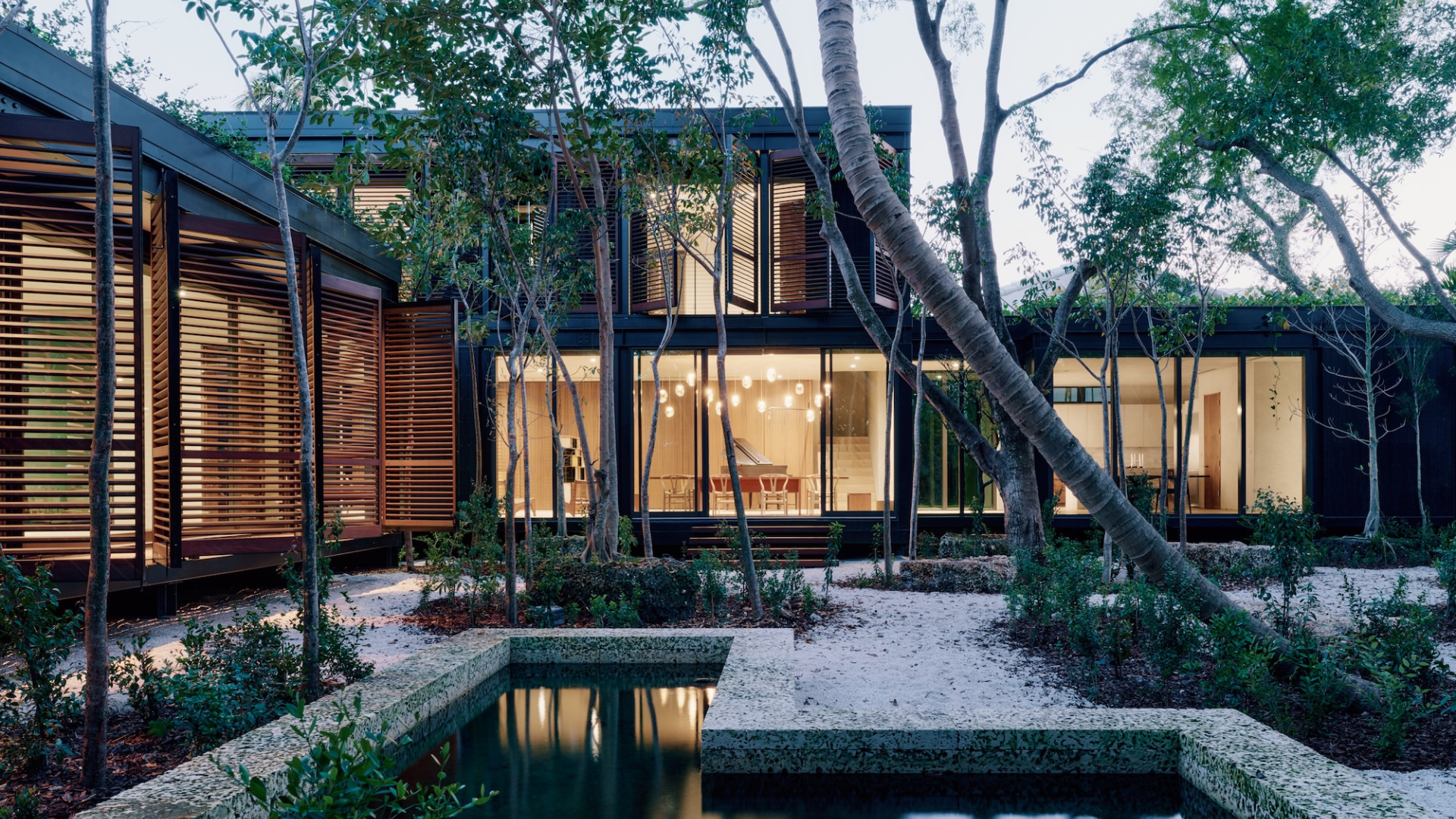 The 4,100-square-foot home developed as 4 pavilions—two one-storey, two two-storey—linked by glass passages and open-air walkways and threaded by way of the forest of strangler fig, Southern stay oak and gumbo-limbo bushes, with understory plantings of and bay cedar, Bahama espresso and seashore creeper, amongst many others.