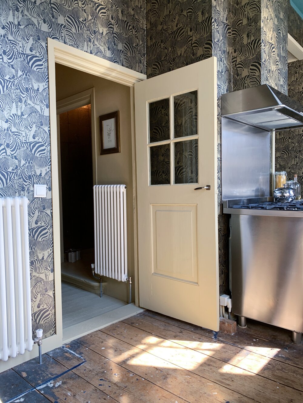 Susanne: “Oh, the zebra wallpaper! The look on folks’s faces after I informed in regards to the plan for our kitchen, particularly after I informed them we have been going to wallpaper all of the partitions of the kitchen, hilarious! To me it’s not daring or daring. I actually needed a brass kitchen however my husband’s dream kitchen has all the time been a stainless-steel industrial kitchen and he’s the chef more often than not so we went for his alternative. I don’t like kitchens that really feel very chilly and medical, I prefer it extra as a room with a kitchen in it.”