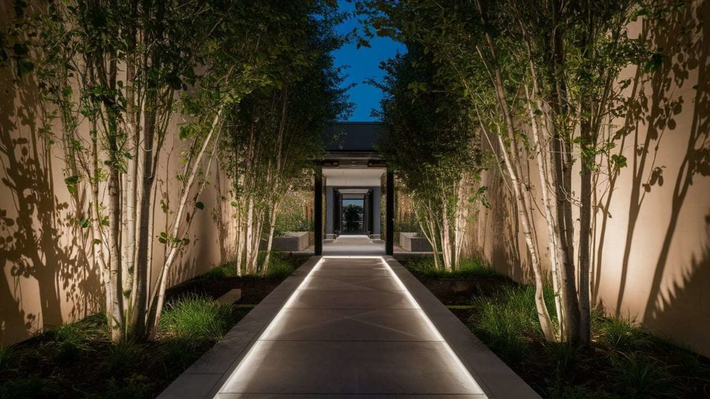 Grazing mild used throughout a stone facade within the backyard brings out the shadows created by stonework. As nearer the sunshine shines to the floor, the extra dramatically the sunshine performs. Lighting alters the notion of texture. Lights near the floor emphasised the pure textures and sculptural aid of closely textured surfaces.