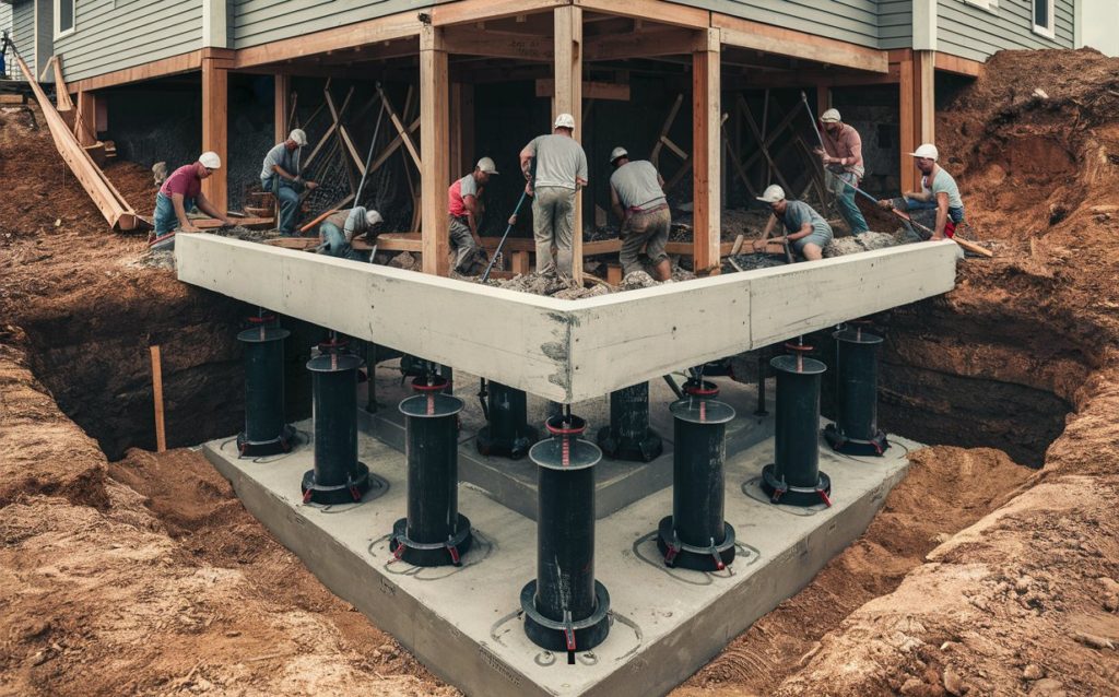 bolstering the foundation of a recently lifted house, ensuring stability and support for the structurebolstering the foundation of a recently lifted house, ensuring stability and support for the structurebolstering the foundation of a recently lifted house, ensuring stability and support for the structure