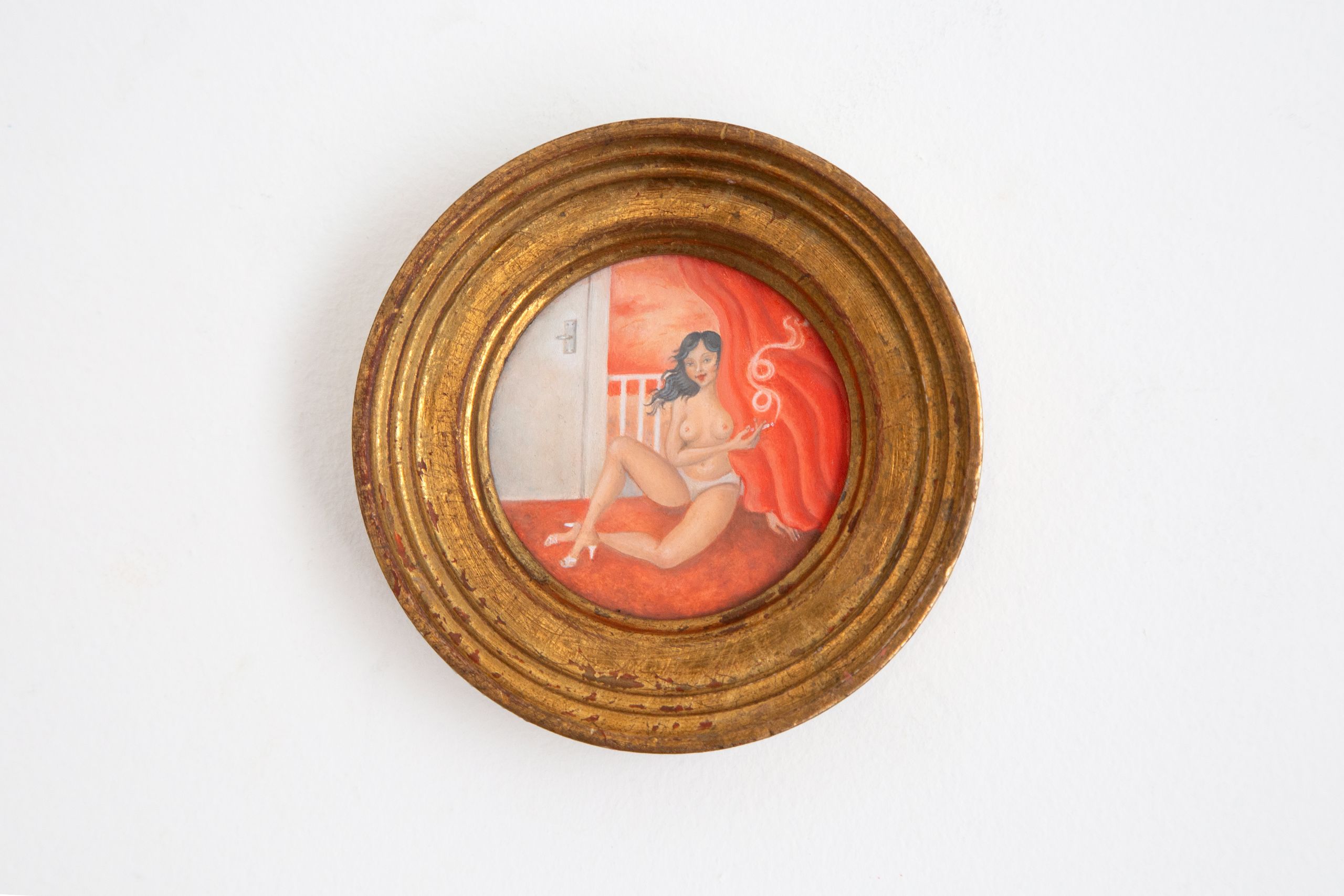 To get a superb take a look at the work in Lorena Lohr’s Motel Nudes collection, you need to lean in intently. They’re miniature spherical works, some as small as six centimetres extensive, every an imagined portrait of a girl in a motel room, ‘caught mid-action, type of luxuriating in suspended time’ as described by the artist. Lohr goals up each element in an instinctive, open method, however attracts from her many travels across the American Southwest, giving the work a layered, ‘palimpsestic high quality.’ Motel Nudes is an ongoing collection, and 4 current work are newly on present in London at Soho Revue, as a part of the group exhibition Behind the Curtains.