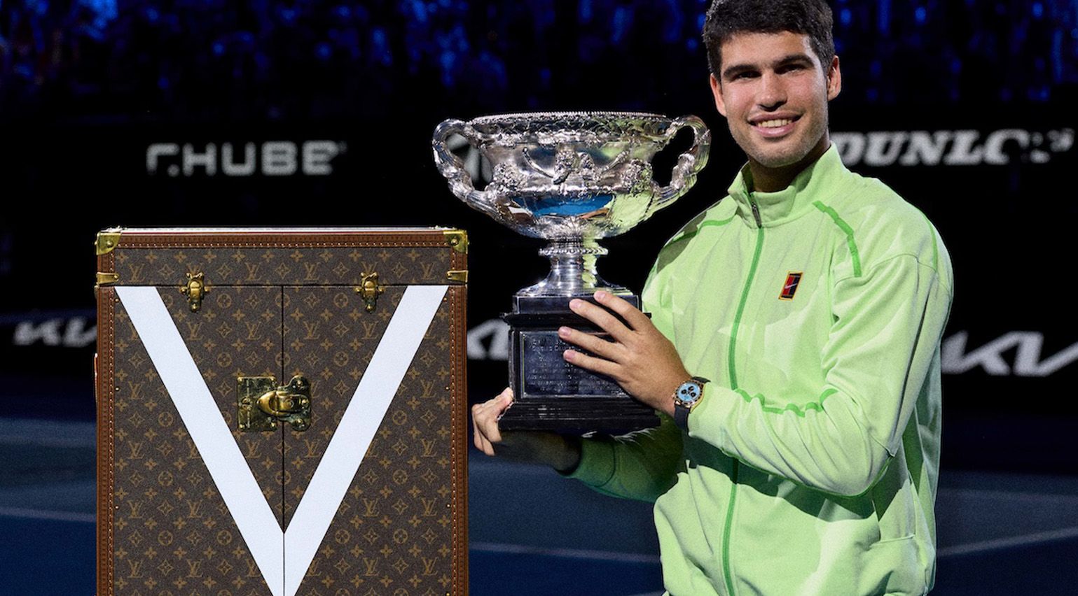 In the meantime, earlier this night, again at Rod Laver Area, Spanish tennis wunderkind Carlos Alcaraz – himself a Louis Vuitton ambassador – triumphed in a tense four-set match in opposition to Novak Djokovic, a fantastic of the sport whose 24 grand slam titles have cemented him as probably the most adorned males’s participant of tennis’s up to date period (in sporting parlance: the GOAT). An emotional Djokovic praised Alcaraz’s efficiency as ‘legendary’, whereas additionally shouting out his former rival, Rafa Nadal, who watched on from the gang.