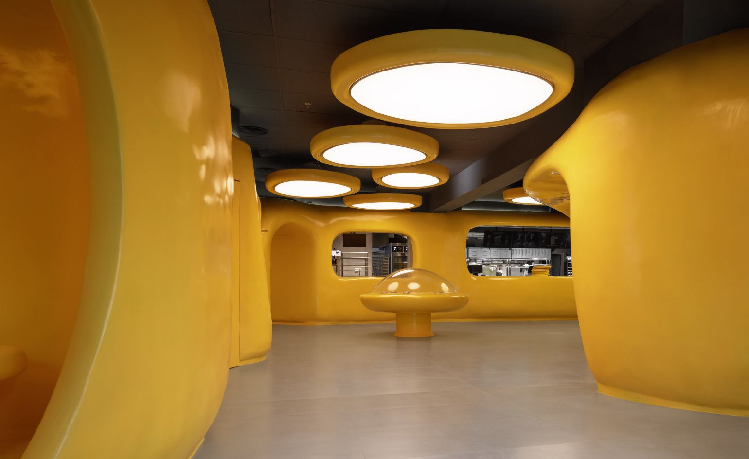 ‘I needed to create an area that invitations you into one other actuality,’ says Crosby Studios’ founder Harry Nuriev of the blobby, yellow universe he has imagined for Butter Child, a brand new dessert parlour in Jakarta. Positioned in Blok M, town’s buzzing procuring and culinary playground, the house channels twin brothers Nick and Henry Burch’s imaginative and prescient of a cosmic sugar-rush expertise.